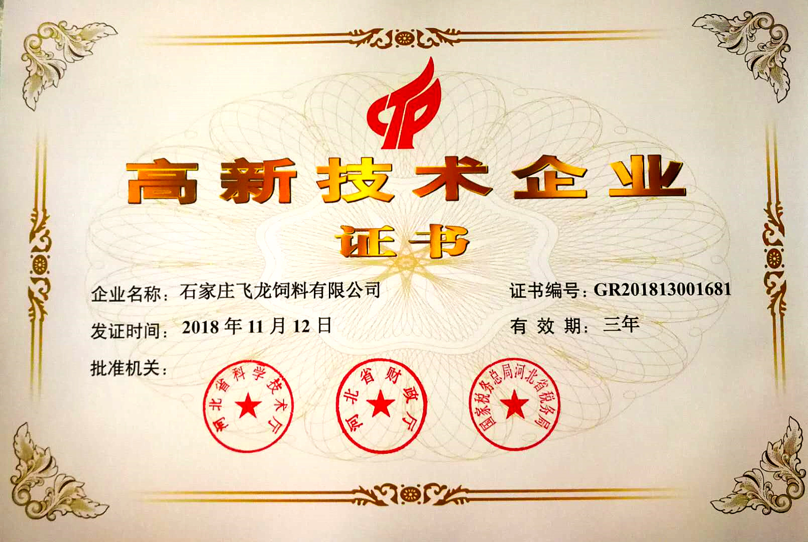 石家莊飛龍飼料有限公司又傳喜訊,經(jīng)過河北省高新技術(shù)企業(yè)認(rèn)定管理工作領(lǐng)導(dǎo)小組嚴(yán)格審核,公司順利通過“高新技術(shù)企業(yè)”認(rèn)定。近日,公司已收到“高新技術(shù)企業(yè)”認(rèn)定證書,正式邁入高新技術(shù)企業(yè)的行列。