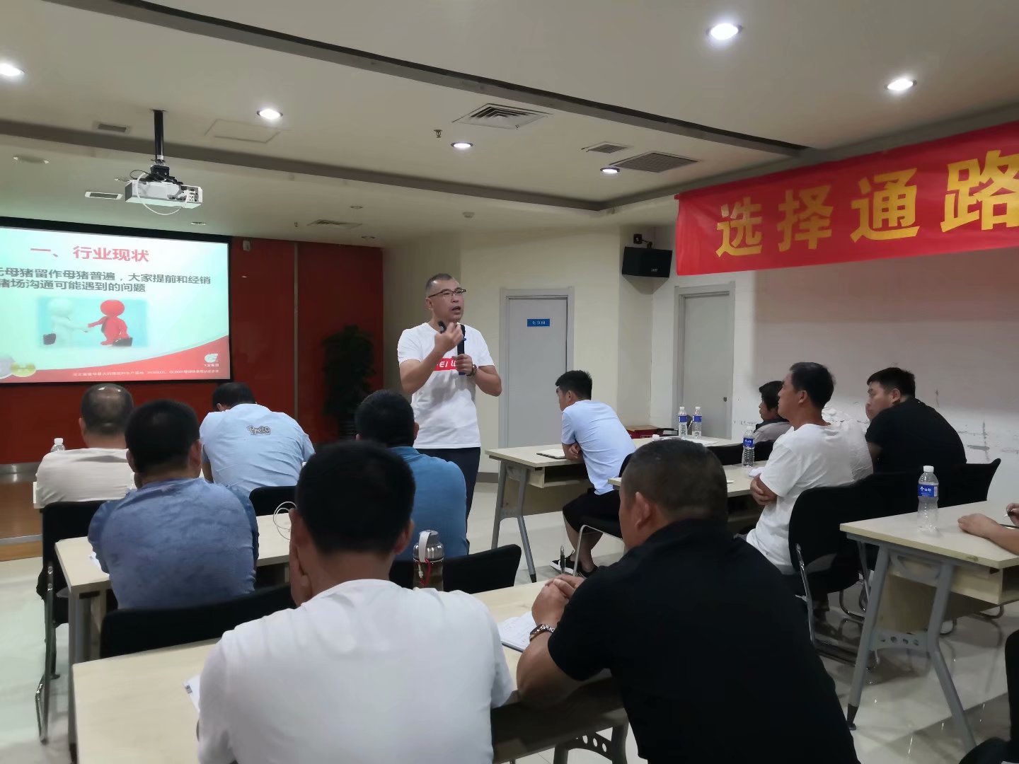 飛龍飼料公司銷售總監(jiān)為學(xué)員剖析目前行業(yè)現(xiàn)狀、最熱話題非洲豬瘟疫苗、未來我們?cè)撊绾螒?yīng)對(duì),非洲豬瘟對(duì)行業(yè)影響很大,對(duì)以豬料為主的業(yè)務(wù)員影響也比較大,很多人已經(jīng)退出這個(gè)行業(yè),經(jīng)過一輪的淘沙,留下的人員該如何做,李總為大家指明未來發(fā)展的方向和道路,更從產(chǎn)品角度為學(xué)員梳理了產(chǎn)品特點(diǎn),為了檢驗(yàn)學(xué)員所學(xué),涉及檢驗(yàn)環(huán)節(jié),讓學(xué)員上臺(tái)演講鍛煉,這對(duì)學(xué)員素質(zhì)有一次大的提升。