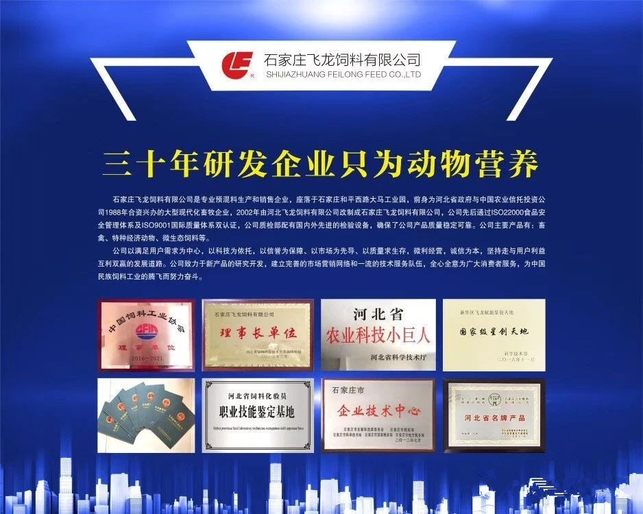 這一年,飛龍投資新建的新廠在無極北蘇工業(yè)園破土動工,完工后可實(shí)現(xiàn)產(chǎn)能預(yù)混料10萬噸,濃縮全價料40萬噸,微生物飼料及生物添加劑30萬噸。