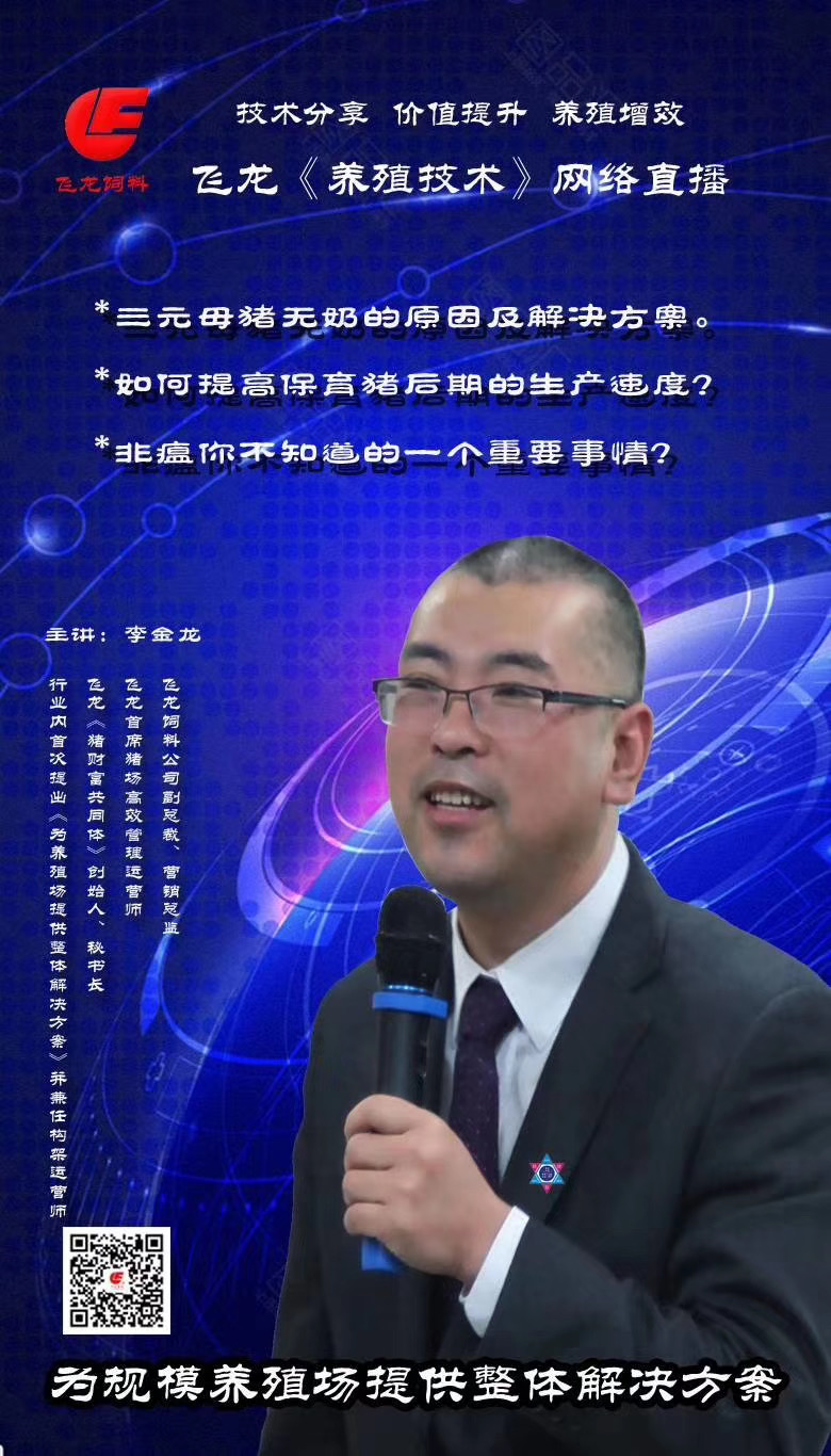 在飛龍飼料“戰(zhàn)疫情、保安全、促民生、穩(wěn)供應”的同時,飛龍飼料于2月5日--2月10日,連續(xù)進行了為期5天的網(wǎng)絡(luò)公益直播課,各專家分別講授了豬、雞的養(yǎng)殖技術(shù)、豬、雞疫病的預防、治療技術(shù),讓廣大養(yǎng)殖戶足不出戶,就學到了真知識、真經(jīng)驗、真技術(shù)。