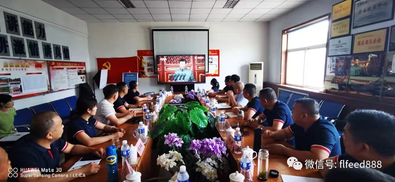 2021年7月1日,中國共產(chǎn)黨迎來了建黨100周年華誕,舉國同慶,中共中央在北京天安門廣場舉行盛大集會,習總書記發(fā)表重要講話,飛龍飼料黨支部組織后勤人員同步收看慶;顒,聆聽了習總書記重要講話,反響熱烈。
