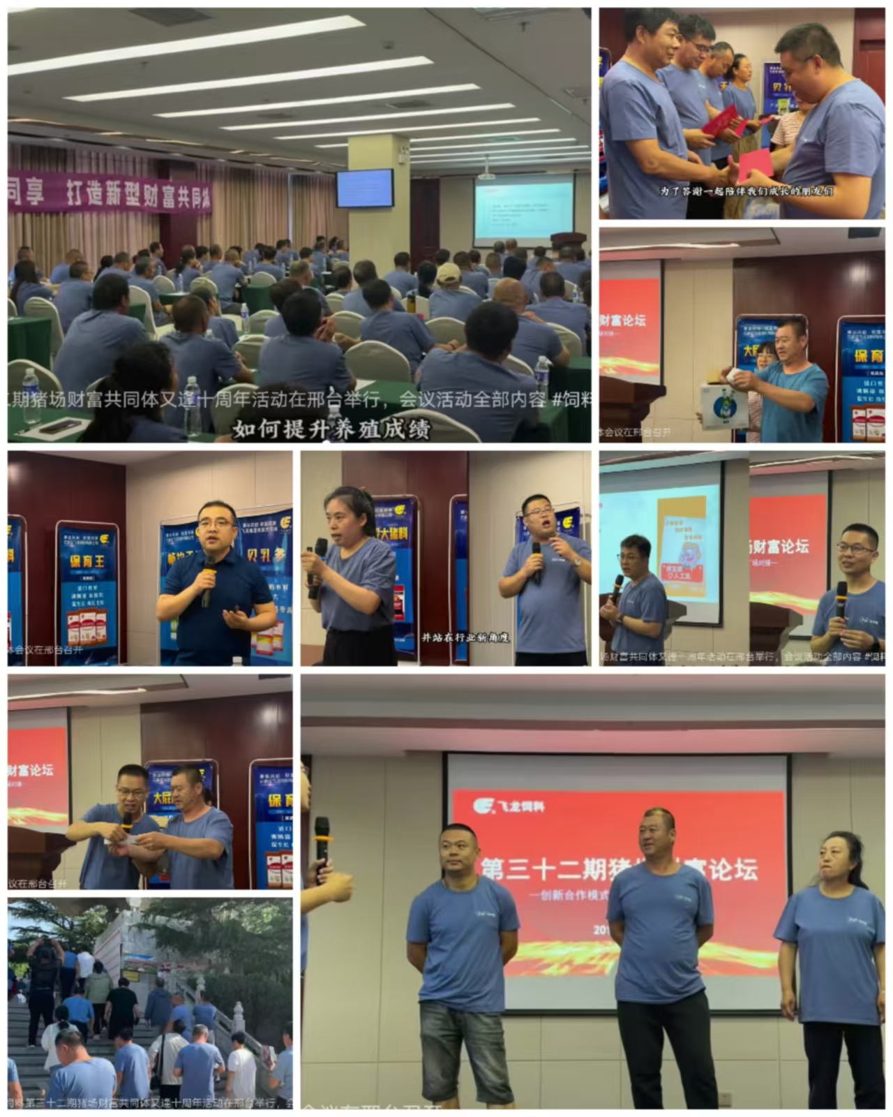 飛龍飼料第三十二期豬場(chǎng)財(cái)富共同體會(huì)議在美麗邢臺(tái)盛大舉行。本次會(huì)議證實(shí)財(cái)富共同體成立十周年,齊聚一堂來(lái)參加飛龍公司會(huì)議。會(huì)議圍繞家庭農(nóng)場(chǎng)在非瘟情況下,如何提升養(yǎng)殖成績(jī),邀請(qǐng)行業(yè)營(yíng)養(yǎng)管理和疾病專家做了專題報(bào)告,站在行業(yè)新角度給予養(yǎng)殖戶合理建議,為了答謝一起陪伴我們成長(zhǎng)的朋友們,現(xiàn)場(chǎng)不僅做了現(xiàn)金分紅活動(dòng),還給大家?guī)?lái)了許多精美禮品。會(huì)后我們還一塊去觀賞了空山白云洞、邢臺(tái)峽谷漂流等大型活動(dòng),共同結(jié)束了這美好的一天。